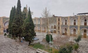 او خاطرنشان کرد: این بنا در دو طبقه و چهار ایوانه ساخته شده است و حجرههای طبقه پایین دارای ایوان، اتاق، پستو و لژ خانواده هستند. در مرکز این بنا، مادی و درختان سر به فلککشیدهای قرار داشتهاند زیرا آب در انبساط خاطر انسان مؤثر است.