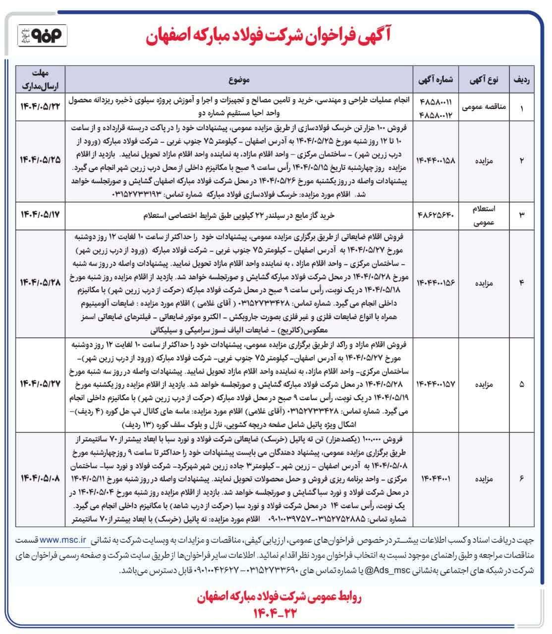 آگهی فراخوان شرکت فولاد مبارکه اصفهان